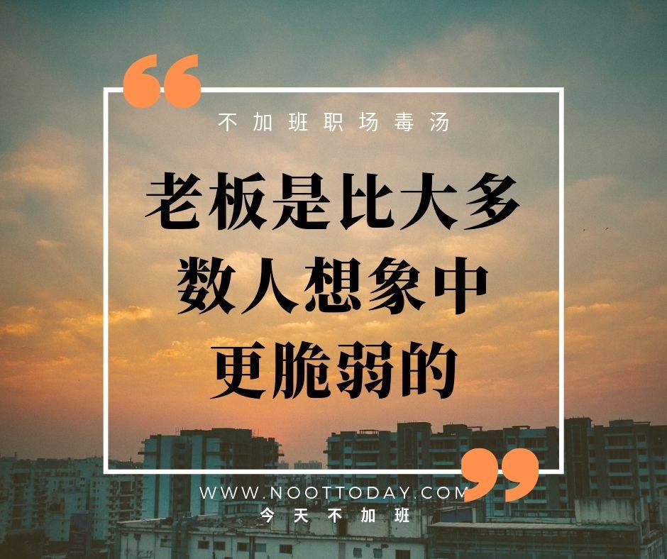 “我有一个brother当了打工仔很多年。打工仔的生活就是上班下班,等薪水等年终。偶尔在办公室讲讲同事閒话,说说上司和老闆坏话,骂骂制度,哭哭自己多惨多可怜,认为老闆是高高在上,员工就只是条狗。。。 现在他终于当上了老闆,公司也成立一年多了。最近看到他长了很多白头髮,苍老了许多。他告诉我,他这一年的经历了各种人情冷暖,包括外面的冷言冷语,内部员工去留和人事状况,下属的心理状态,无法掌控的人性,还要面对各种八卦流言,内忧外患等问题。最头痛是每个月的账目,出粮,公司的盈亏和排山倒海的讨债压力。。。 我回答他。当老闆本来就不是高高在上的,首先要学会低头,要准备比任何人都要辛苦,比任何人都不用睡觉。面对任何问题你只能吞下,然后想尽办法解决。。。因为,你再也无法像以前一样讲讲八卦,骂骂上司,干干公司制度,扮扮可怜玩哭哭。。。 只有当老闆的需要去下跪,需要去磕头,需要去拉下自尊和脸皮。其实员工才是真正的皇帝,才是高高在上的那个,这是必须看清的事实。。。 你把东西都交给员工,担心他会跑掉;你不交给他,最后做死自己。你奖励他多了,他会觉得理所当然,是他应得的;若她犯错10次,你忍无可忍必须处罚他,但只要你罚她一次,她会恨你入骨,到处骂你是人渣;你不处罚他或处罚太轻,其他员工会说你不公平,甚至有样学样。。。 你压力再大,在外面受到再大的侮辱,有一天钱没了,尊严也没了。你也不能像员工一样,一句话就可以辞职一走了之。你必须嚥下,半夜躲起来哭。对,你必须躲起来,因为你不能被其他人看到你的软弱,因为这样外面的客户跟员工们会质疑你的能力。。。 创业本来就不简单,但是可以让一个人迅速成长,勇敢面对自我。总之,一步一步来吧。”